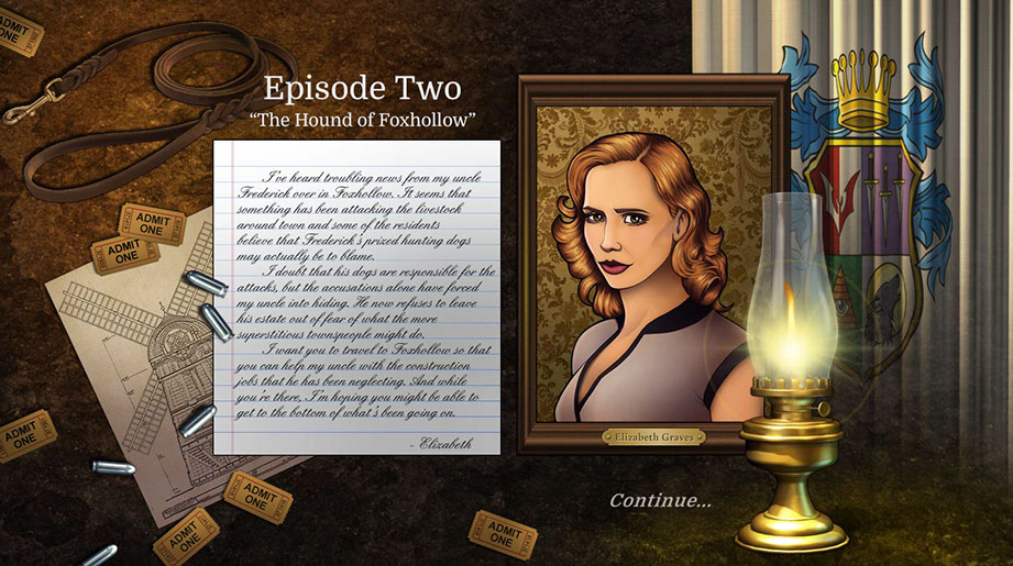 Build-a-lot Mysteries Chapter Introduction Interface Chapter introductions for Build-a-lot Mysteries were one of the few places in the game where we could create atmosphere for the player. This interface screen needed to communicate a fair amount of information to the player, but also needed to be visually compelling. My solution was to create a rich desktop complete with a portrait of the game's host (Elizabeth Graves), a letter from her conveying the overarching theme of the episode, and a collection of episode specific clue items. My duties on the introduction screen were to design the layout for the interface, which included thumbnail sketches and wireframes, completing the full page illustration including the character portrait, the props and the clue clue items and writing the introduction text. All artwork was created using Adobe Photoshop and Autodesk Maya. Interface Screen Rough Sketch