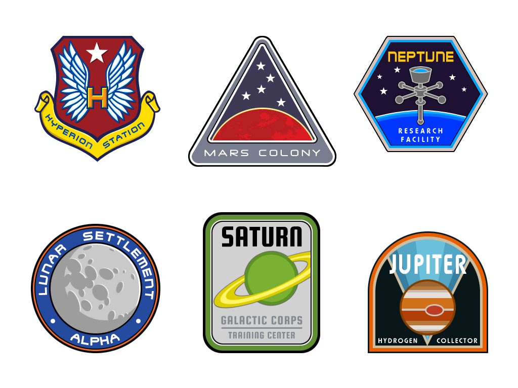 I researched Nasa mission patches and military squadron designs and used those as my inspirations. I made sure that each patch had its own fonts and color schemes that related to it's associated destination in the game.
