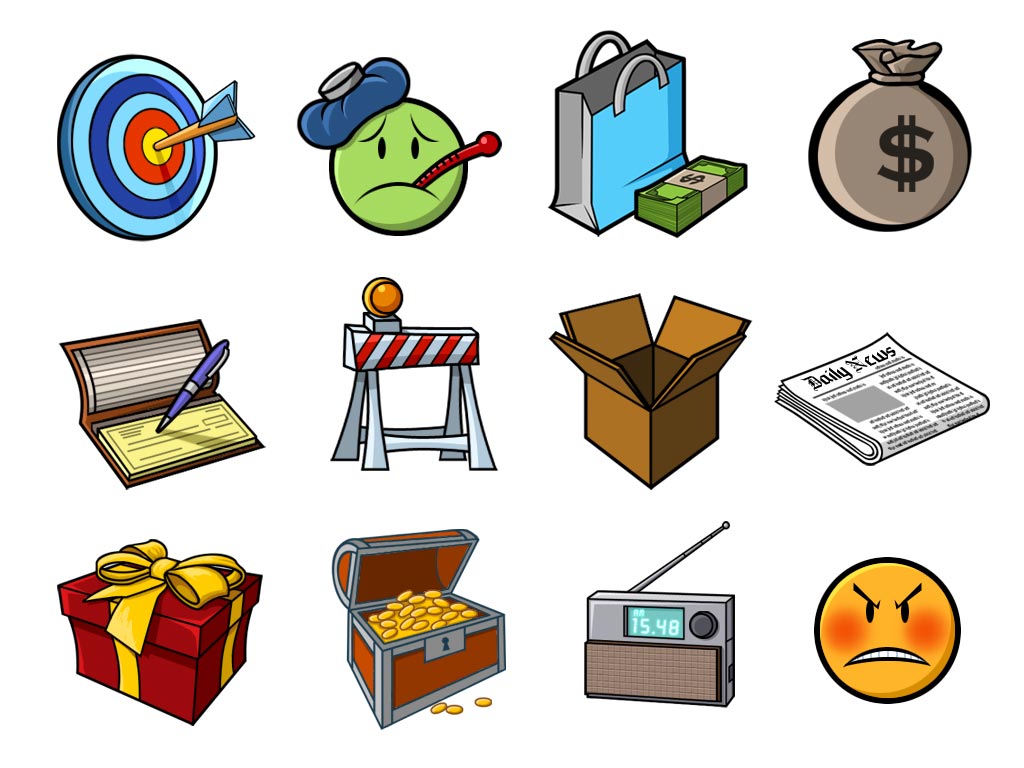 Shop It Up is a light simulation game where players open businesses inside a mall. The vector art style is simple and colorful so I made sure that the in-game icons had a fun cartoon look to them. Shop It Up! in-game icons